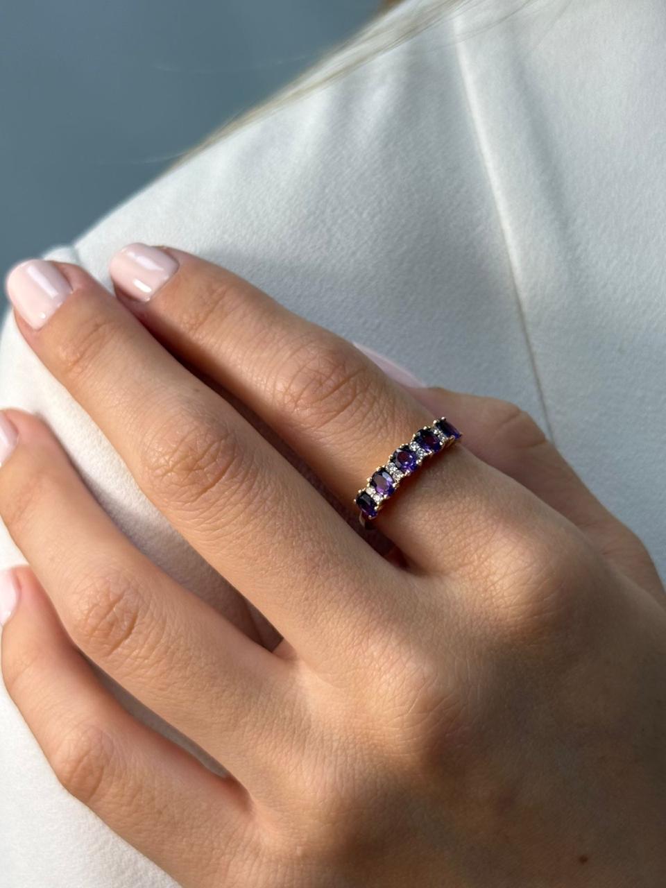 Anillo Oval Zafiro Con Diamantes