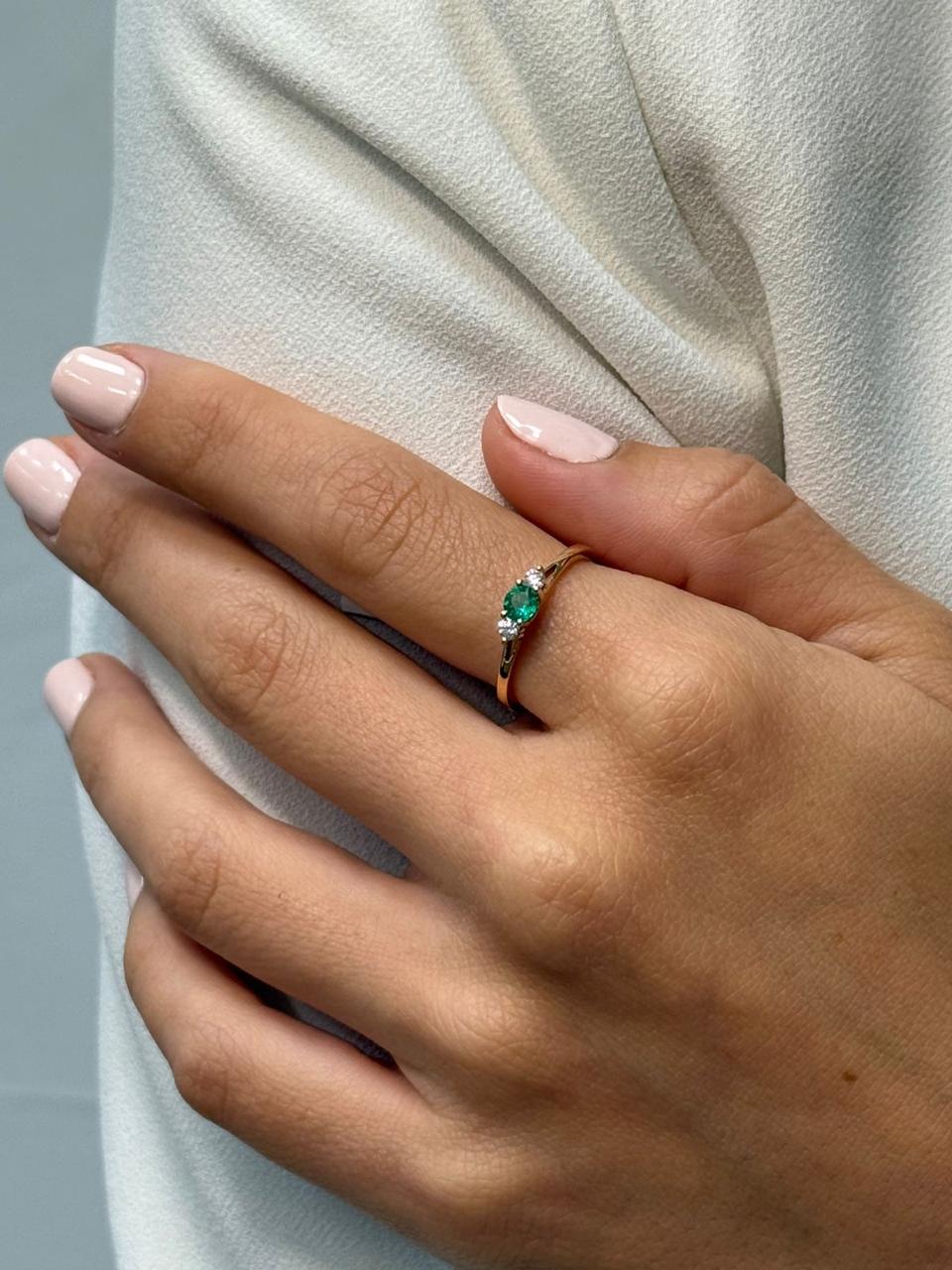 Anillo Esmeralda Redonda Con Diamantes